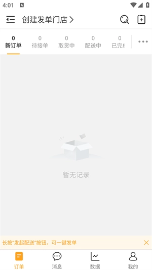用户可以通过选择门店发单功能,完成外卖配送订单的一键发单操作。