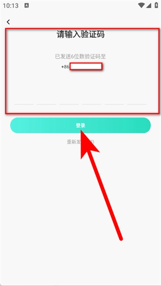 请输入收到的验证码,接着点击登录按钮,以此完成账号登录的操作。