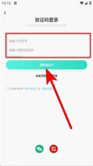 在验证码登录界面,填写手机号与图形验证码后,点击“获取验证码”按钮。