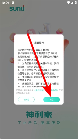 打开行山百业,在温馨提示弹窗中,点击同意。