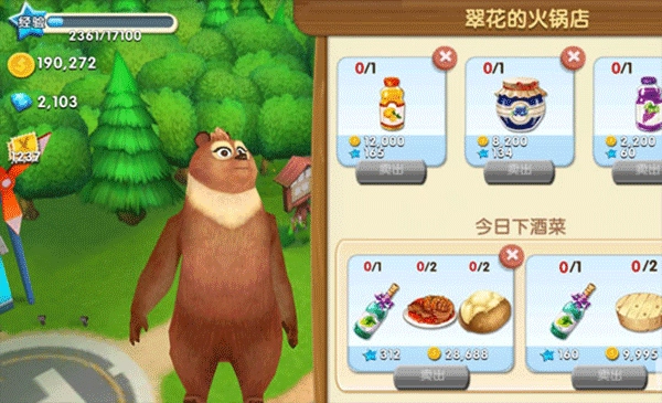 3、翠花你知道是谁不?当然是熊大暗恋的那只母熊啦。翠花开的火锅店,每天也会下订单,需要玩家去完成。