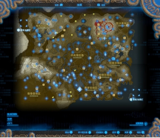这张地图是我自己玩游戏时一步步探索出来的,因为游戏机本身的限制,后期我又用PS把全图处理完整了,说不定是目前网上能找到的最清晰版本。有了它,下一位玩家就能更快定位到120个神庙的位置,找齐之后去忘却神殿领取套装奖励,这样你的大师剑就能一直保持满血状态全力输出啦。