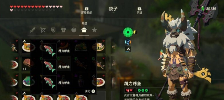 最后要说的是精力烤鱼,它的恢复精力配方是:用3条精力鲈鱼就能制作出能恢复3圈精力的料理。这三个料理是最划算的,玩家可以根据自己的需求来配制。