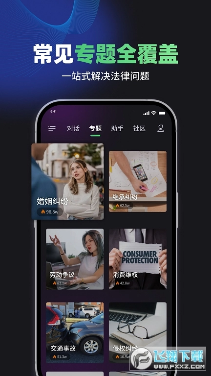 嗨小律正版是一款为用户提供智能化法律咨询服务的软件。用户能与人工智能对话,随时在线学习法律知识,提升自身法律素养与自我保护能力;软件还支持全天候在线咨询,让用户可随时随地满足法律咨询需求;此外,它提供了丰富的合同模板,用户可根据需要自由查看。