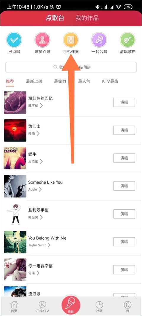 此时我们尚未把伴奏上传至软件中,进入手机伴奏界面后会看到提示,要求我们将文件放入指定文件夹,这时只需前往手机的文件管理进行移动操作即可。