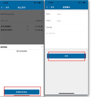 当选择“医院药品邮寄”服务时,请点击填写邮寄地址并完成【保存】操作。