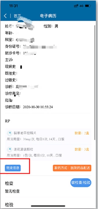 选择邮寄地址,勾选“北京医院送药到家服务知情通知书”后点击【确认】,完成药品费用支付,下单后静候药品寄出,可通过【物流信息】查看配送进度。