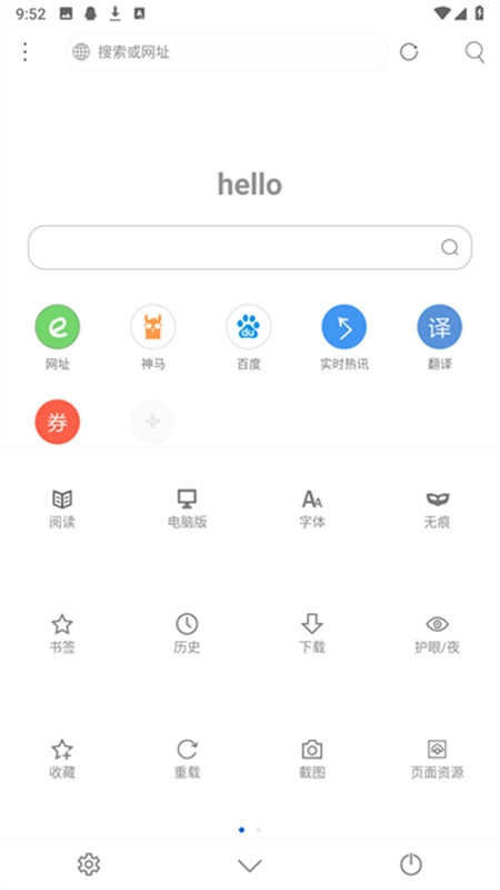 安装完成后,「米侠浏览器」的默认启动页面十分清爽简洁,不会像部分浏览器那样推送新闻之类杂乱的功能;要是你对自带的网址不满意,还能通过长按操作进行删除、编辑,或是自行添加常用的访问网址。