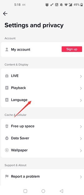 3.找到并选择“Language”;
