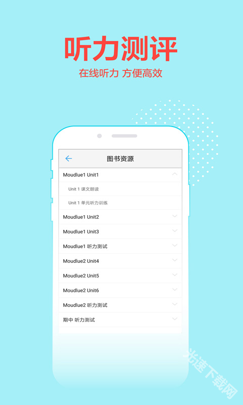 首页:配备学习工具、教学资源、听力评估、口语评估等功能。