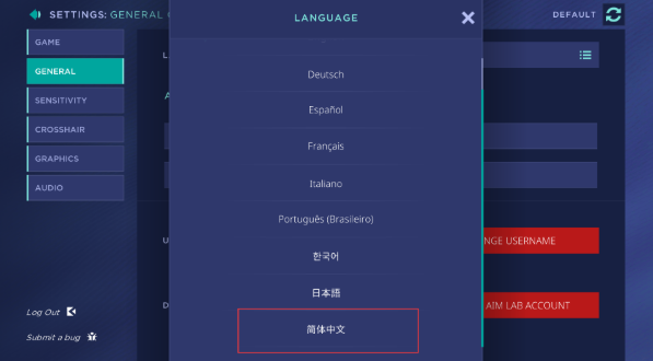 点击左侧的GENERAL栏目后点击右侧语言选项栏