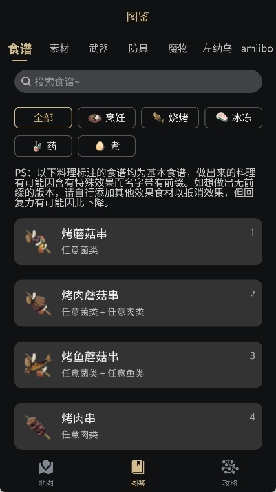 - 料理列表:提供全面的料理列表及制作攻略。