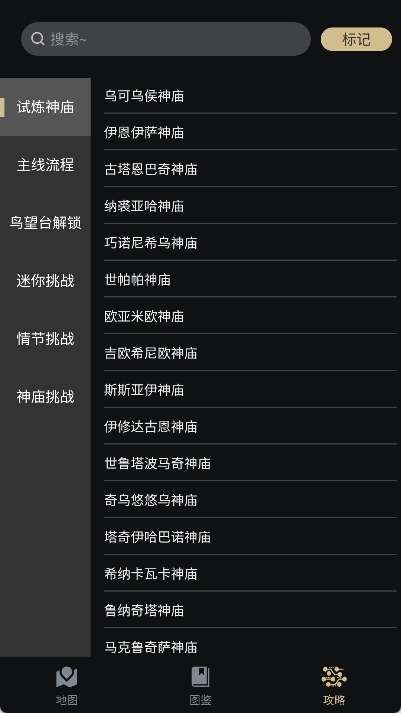 我们还额外准备了精灵位置、支线任务以及宝箱的详尽说明,能让您的探索过程变得更充实有趣。只要您简单点击一下,神庙的攻略就会立刻展示出来,帮助您顺利开启所有神庙。