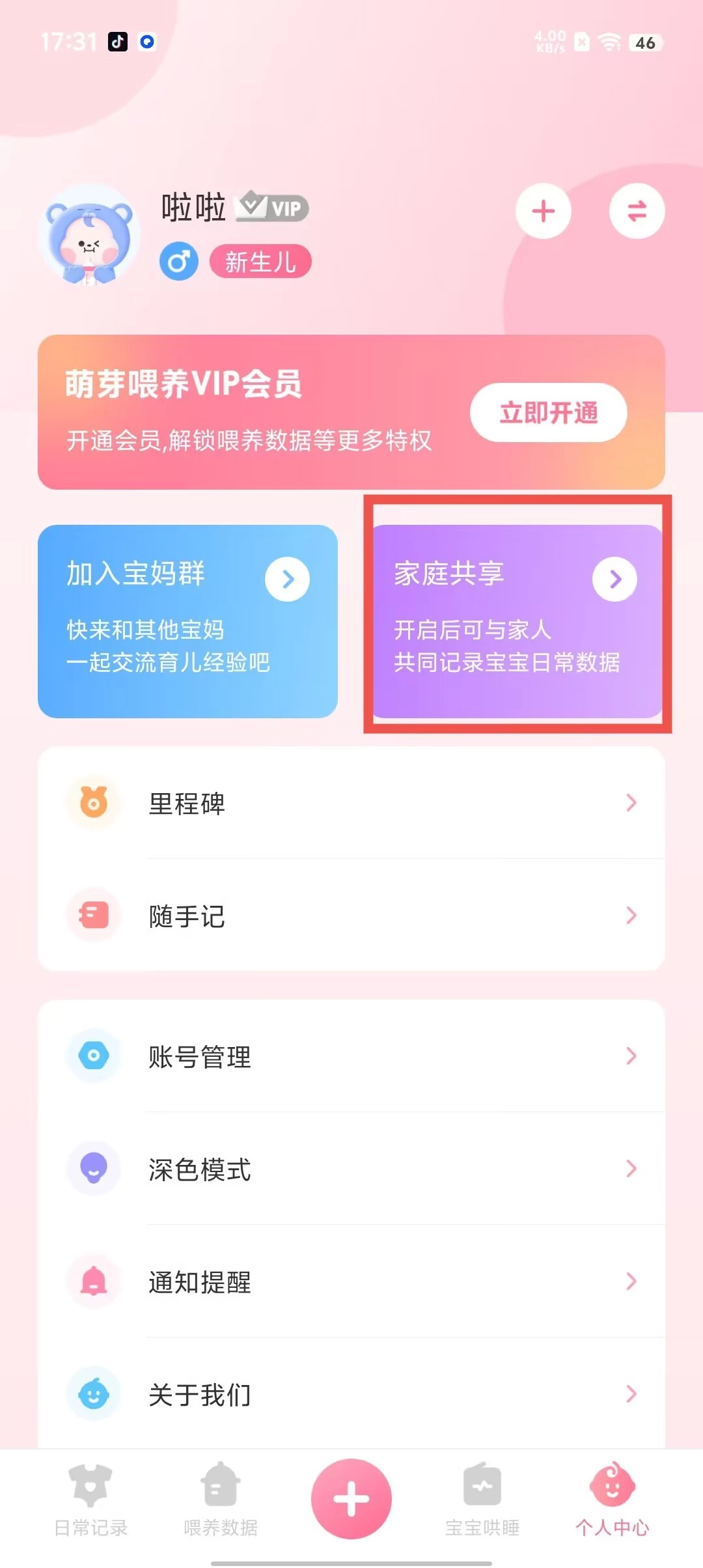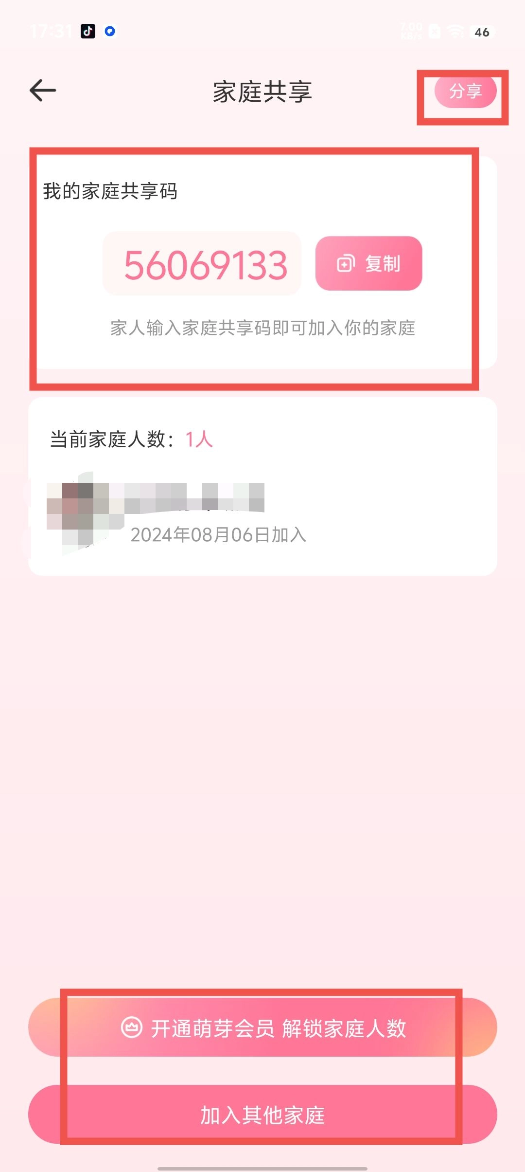 家庭成员只需输入分享的家庭共享码就能加入,随时都能查看宝宝的各类数据。