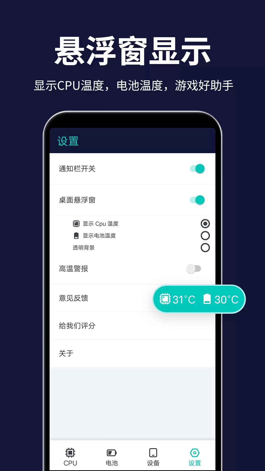 实时显示CPU温度和电池温度,适合游戏玩家使用。