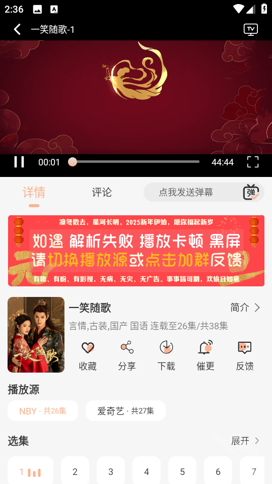 打开余白影视,播放任意电视剧。
