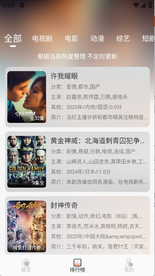 排行榜根据当前热度对影视进行排序。