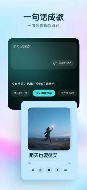 音梦AI是一款能帮你轻松实现音乐梦想的掌上AI创作助手。依托国内先进的AI智能化技术,它只需三步就能完成一首完整的歌曲:在文字框输入歌曲主题,即便没有灵感,AI也能为你提供创作思路;点击生成按钮,就能立刻拥有一首动听的歌曲。而音梦AI手机版最令人惊喜的功能当属拍照成歌——只需导入相册中的照片,就能即刻创作出一首专属歌曲!