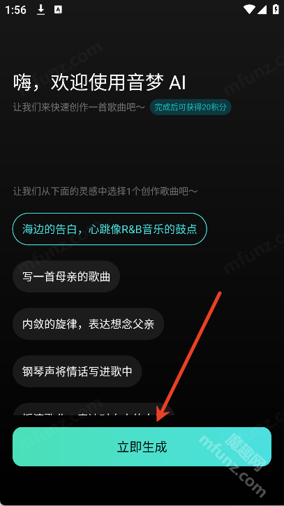 挑选风格、乐器、语音以及演唱方式,点击立即生成即可完成操作。