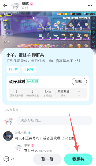 需要和账号主人商量后一起在游戏里充值,像角色皮肤、派对手册、蛋币这类物品都包含在内,这种共号方式比较适合愿意在游戏中投入的玩家。