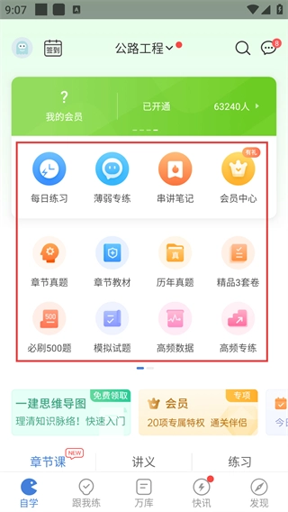在自学页面可以找到【每日练习】【薄弱专练】等功能入口,根据自身需求选择相应入口,即可开启对应的学习训练。