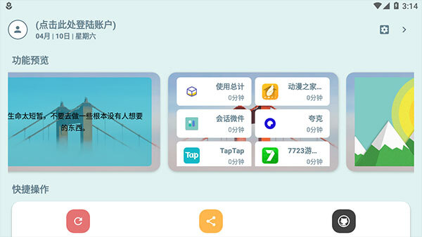 安装会话微件后,点击屏幕上的软件图标即可进入软件首页,首页界面如下所示。