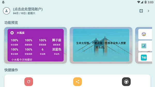 直接运用快速模式天气、倒计时、工具、待办事项列表等功能,以提升用户自身生活效率,满足各类操作需求。