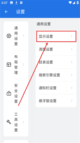 进入设置页面后,选择【显示设置】选项,即可进入显示相关的配置界面,对界面显示规则进行调整。