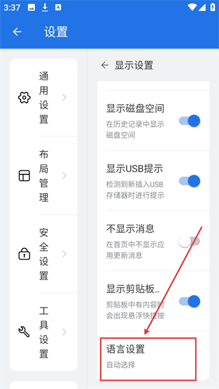 在显示设置页面,点击【语言设置】选项,就能进入语言选择界面,进而更换应用的显示语言。