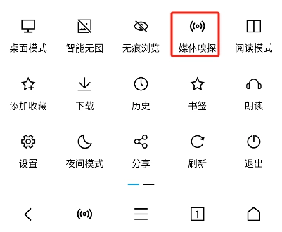 在弹出的功能列表中找到并点击“媒体嗅探”功能。