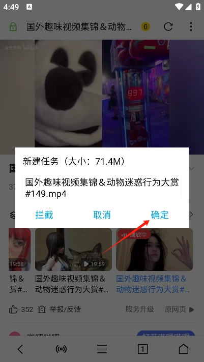 点击右侧显示的按钮,视频就会开始播放并保存到您的设备里。