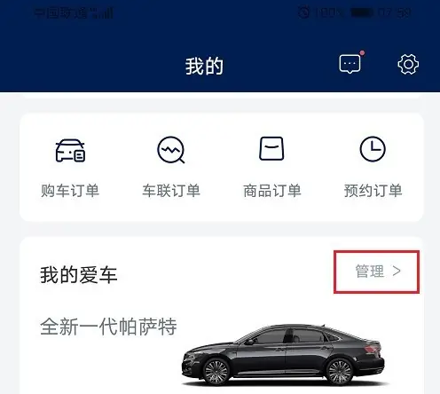 进入“上汽大众我的界面”后,点击“管理”选项。
