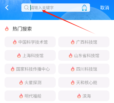 首先要在首页的搜索框里输入你想参观的科技馆名称,然后进行搜索。