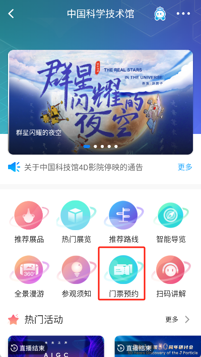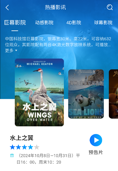 “首页”板块集合了科技馆的热门活动、相关资讯以及影视佳作,便于用户及时了解最新信息。