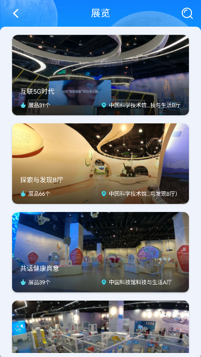 “逛馆”板块引导用户在线漫游全国科技馆,不必出门就能感受科技的独特魅力。