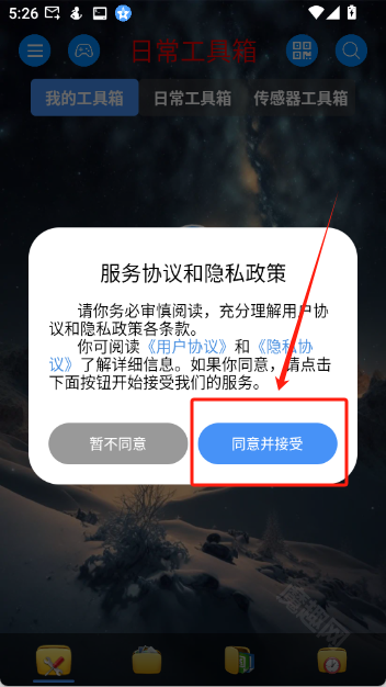 首先前往魔趣网,找到并打开太极工具箱,进入该软件后点击“同意并接受”按钮。