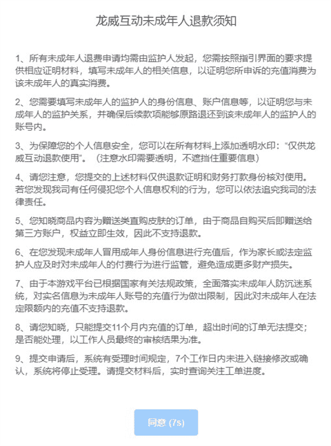 然后点击“申请入口”,进入后会出现未成年人退款须知,这里同样需要留意查看哦!