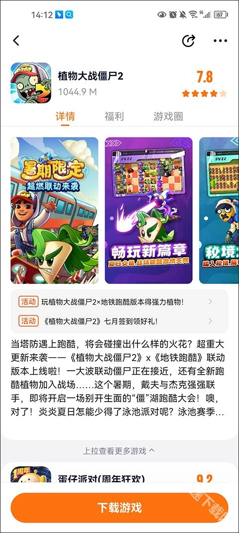 选中《植物大战僵尸2》,进入游戏介绍界面,这里有详细的攻略和游戏圈,随时都能开始游戏。