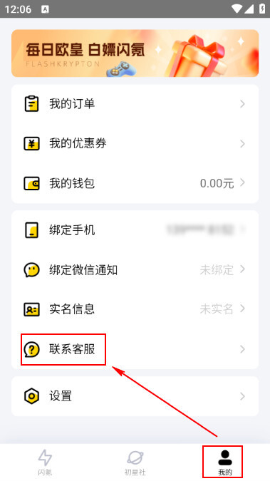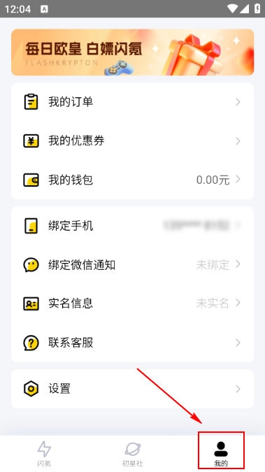 安装登录闪氪之后,点击【我的】