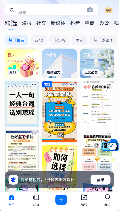 挑选模板,替换文字与图片,马上就能完成各类场景的图片设计。