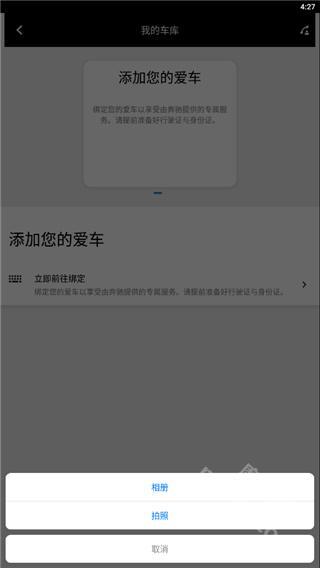 绑定您的爱车,即可享受奔驰为您提供的专属服务。请提前准备好行驶证和身份证,并通过拍照的方式添加。