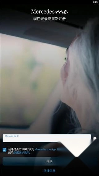 梅赛德斯奔驰应用程序需通过Mercedes me ID进行登录,若未注册则需重新注册。