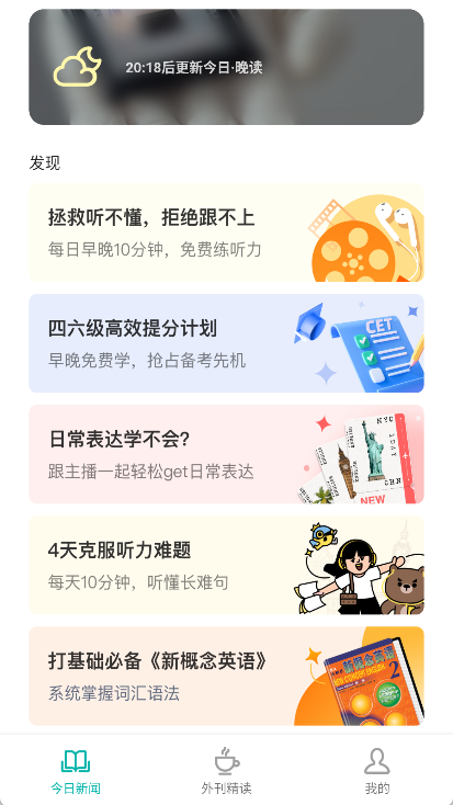 在首页中浏览并选择想要阅读的外刊文章。