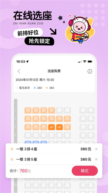 票牛平台上的部分演出目前可提供在线选座服务,具体情况请以演出实际安排为准。