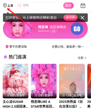 安装并打开票牛,然后将手机定位打开