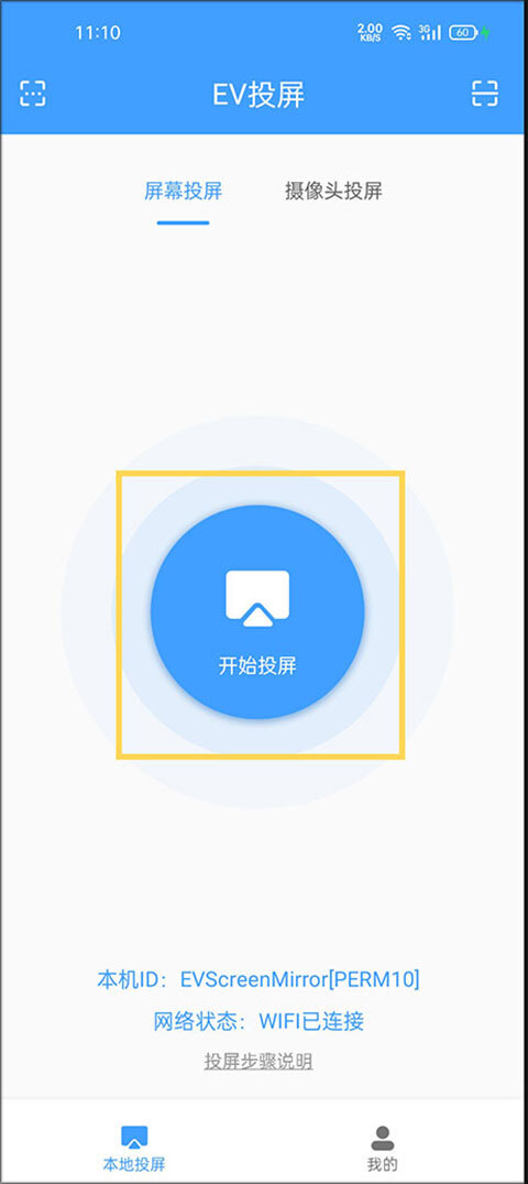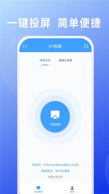 请确保电脑与手机处于同一网络环境下。具体操作步骤如下:在安卓手机端启动EV投屏应用,随后点击界面上的“投屏”按钮。