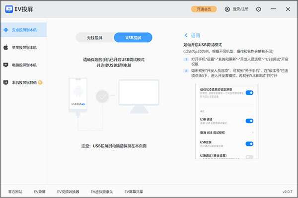 -支持通过数据线进行投屏。