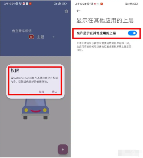 这款软件的使用方式很简单,它不需要登录,并且全程只有这一个界面,依靠屏幕上动态悬浮窗的动画效果来达到防晕车的目的。