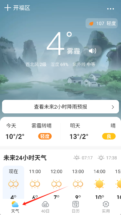 我们需要打开相雨天气,并点击“天气”选项。