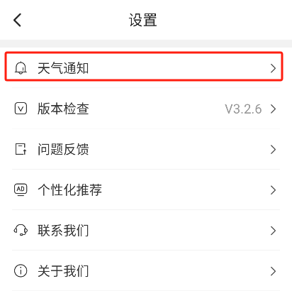 点击页面右上角的更多功能图标,接着在设置里找到“天气通知”选项并点击进入。